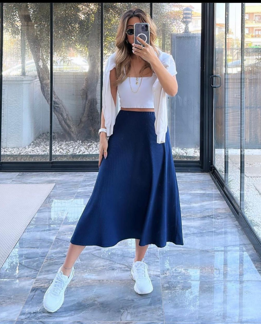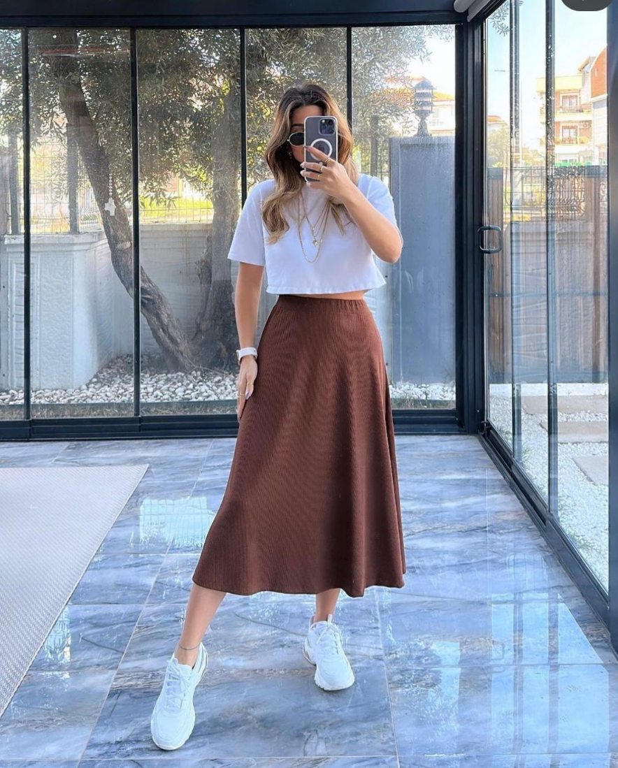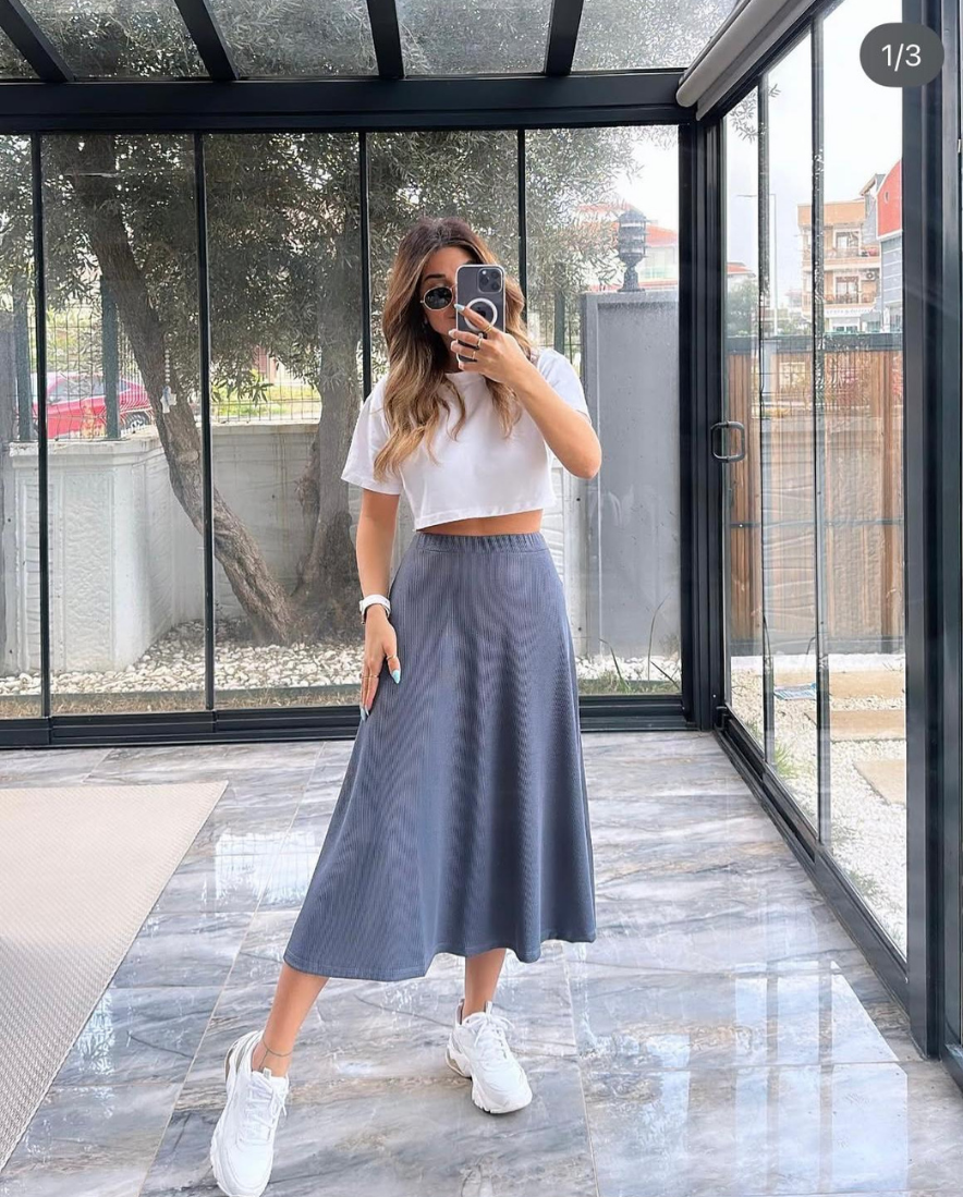 Yumuşak dokusu sayesinde cildinizle dost, nefes alabilen kumaşıyla ise dört mevsim rahat bir kullanım sunar. Gömlek, crop top veya basic tişörtlerle kolayca kombinlenebilir. Dolabınızda zamansız bir parça arıyorsanız bu etek tam size göre!